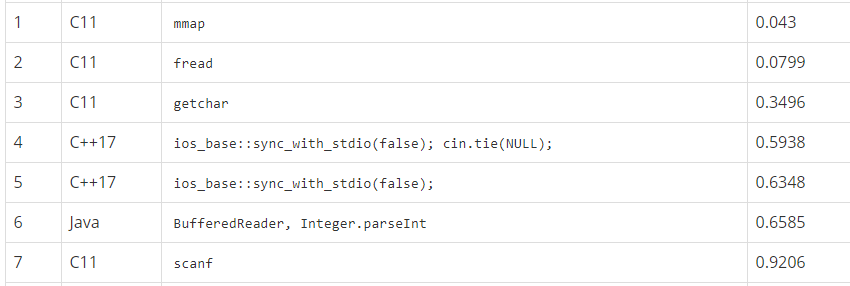 입력에 경우, BufferedReader를 사용하면 흔히 빠르다고 생각하는 C의 scanf 보다도 빠르다는 사실을 알 수 있습니다.