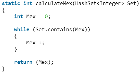 하지만 위의 방식대로 mex를 구하면, set을 생성하고, set에 dp 값을 집어넣고, contains로 비교하는 과정이 느립니다.