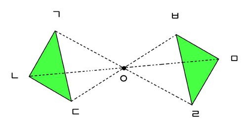 점대칭은 한 도형을 한 점 주위로 180° 회전했을 때, 본래의 도형에 완전히 겹치는 대칭을 말한다.