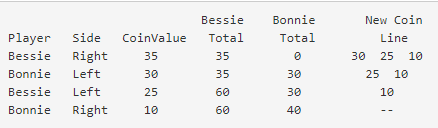 Bessie and Bonnie have found a treasure chest full of marvelous gold coins! Being cows, though, they can't just walk into a store and buy stuff, so instead they decide to have some fun with the coins.