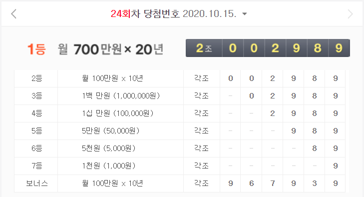 연금복권720+ 24회차 당첨 결과
