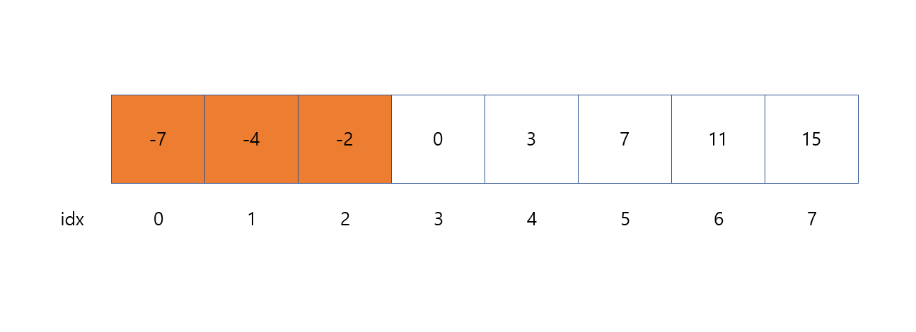 위와 같이 크기가 8인 배열이 있다고 하고, 찾으려는 값은 -7이라고 합시다.