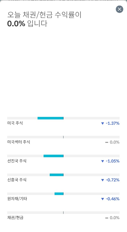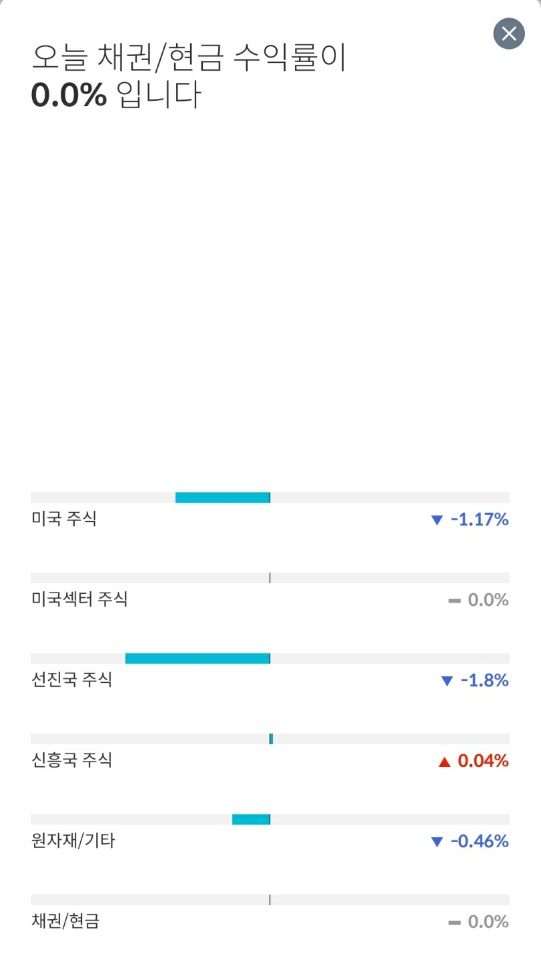 특히, 미국 주식과 선진국 주식이 많이 떨어졌습니다.