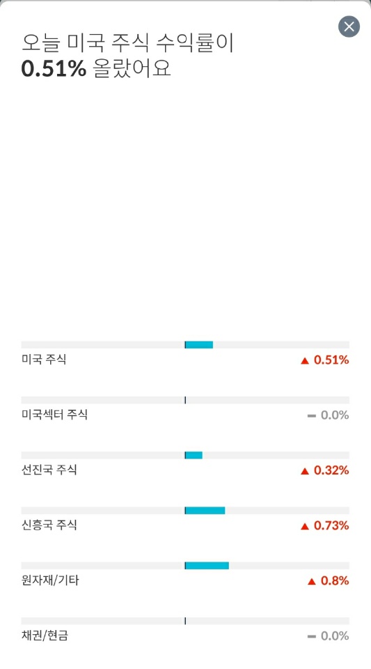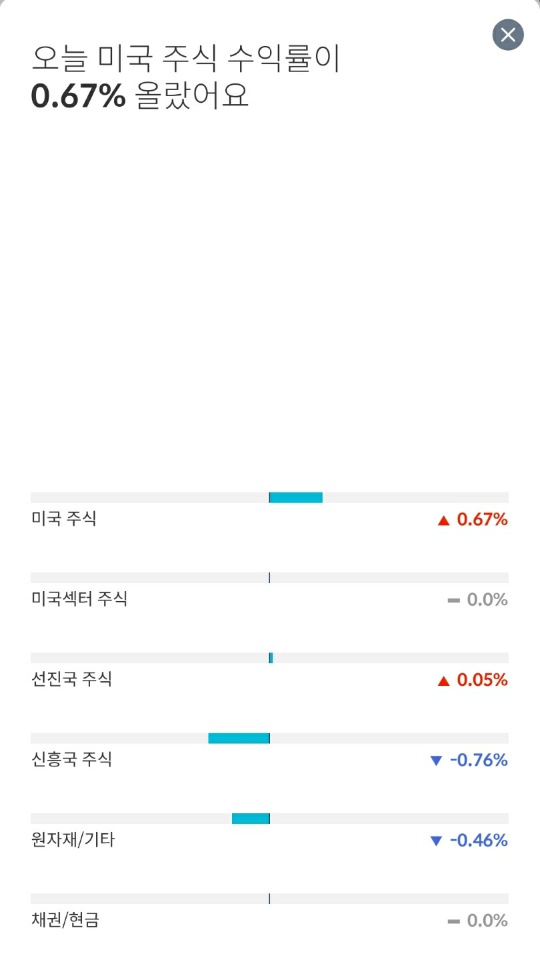 그래서 자연스럽게 미국 주식이 가장 많이 올랐고, 그 다음 선진국 주식이 약간 오르는 행보를 보였습니다.