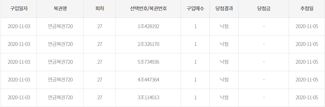 | 연금복권720+ 28회차 당첨 결과 (2) | 2020.11.12 |