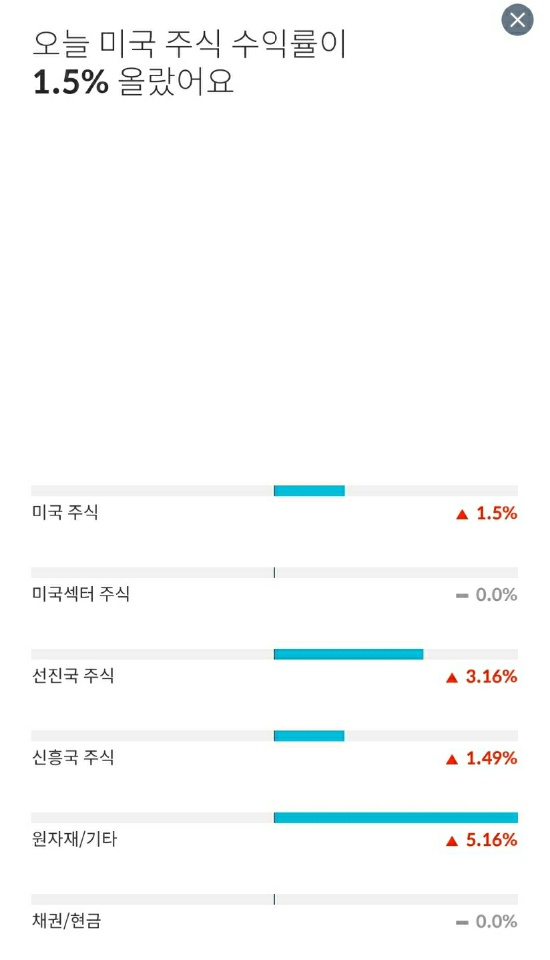 보시다시피, 원자재/기타는 그렇다치고, 미국 주식과 선진국 주식이 3일 연속 의미 있는 상승폭을 보여주었습니다.