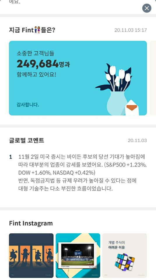 | [Fint] 핀트 투자 후기 및 일지 (21일차) (8) | 2020.11.01 |