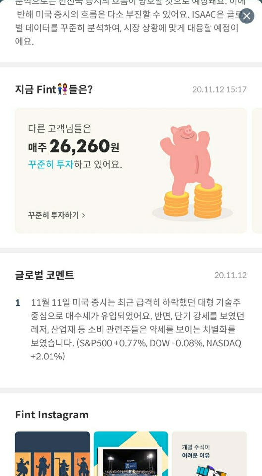 | [Fint] 핀트 투자 후기 및 일지 (28일차) (6) | 2020.11.08 |