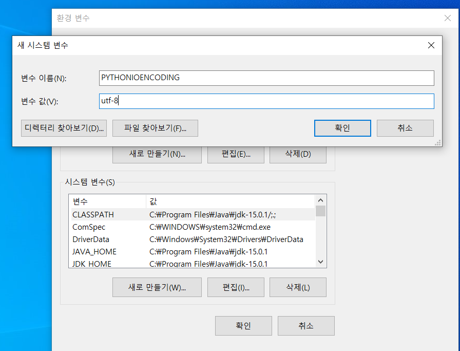 바로, 환경변수에 인코딩을 추가하는 것입니다.