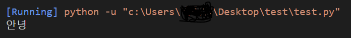 vs code 기본 인코딩 옵션을 euc-kr로 설정하고, 위와 같이 작성한 코드를 실행하면 아래와 같이 출력됩니다.