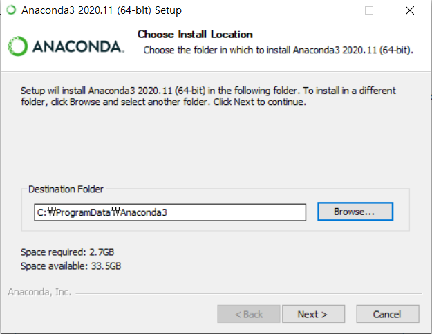 다음 화면은 설치 경로인데 웬만하면 한글이 없는 경로로 설정해 주시면 되겠습니다. 저는 C드라이브에 설치하였습니다. 그리고 또 [Next]를 누릅시다.