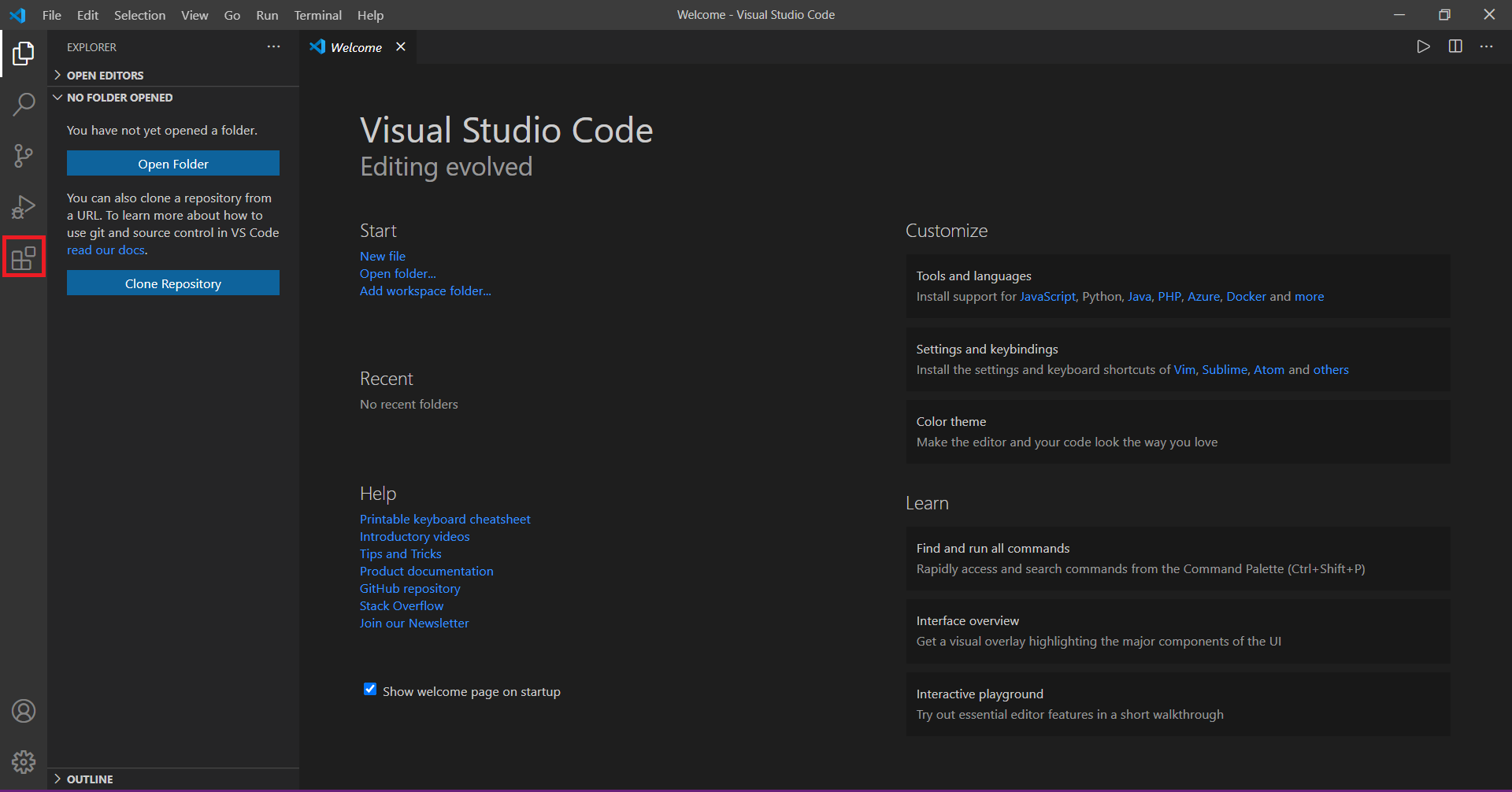 위와 같이 창이 뜨는데 왼쪽에 빨간색 박스를 친 부분(extensions)을 클릭합니다.