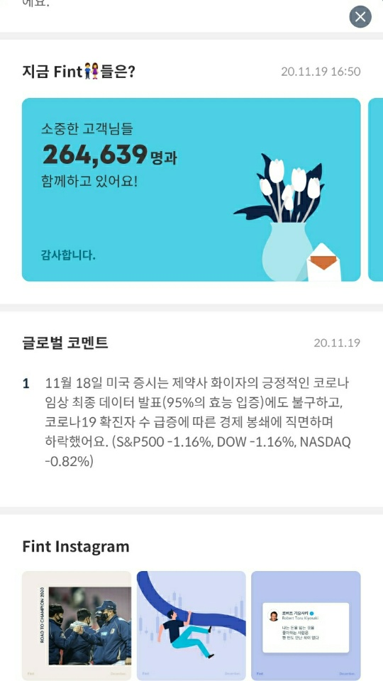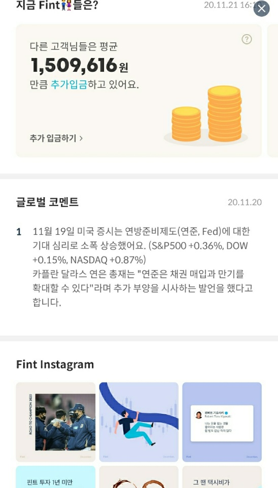 | [Fint] 핀트 투자 후기 및 일지 (49일차) (4) | 2020.11.29 |