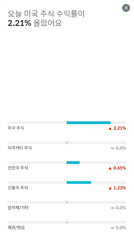 비록, 미국 주식은 소폭 하락이지만 나머지가 모두 상승해 주었습니다.