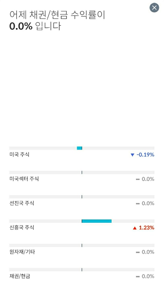 미국 주식이 약간의 하락세를 보였지만, 신흥국 주식이 이를 모두 커버하는 모습입니다.