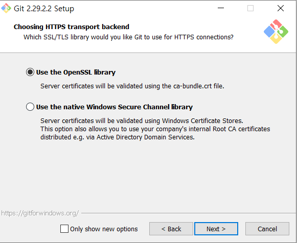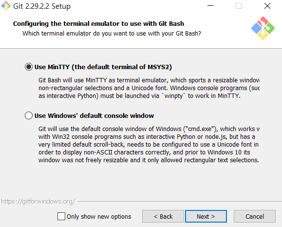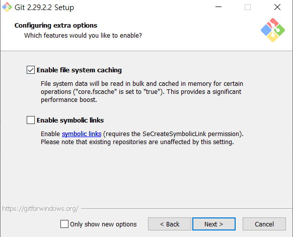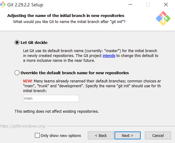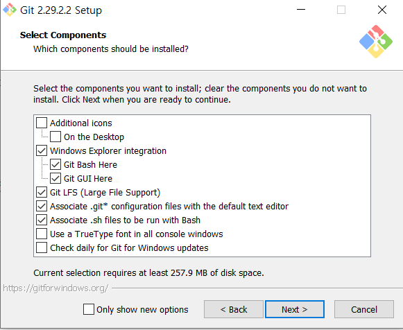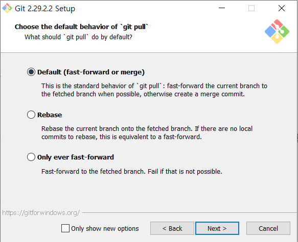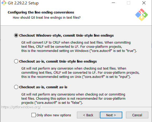 사실, 학습용으로는 그냥 Only show new options이건 뭐건, 다 [Next] 눌러도 무방합니다. 하지만, 이 Git 설치를 할 때 생각보다 다양한 설정이 있어서 이번 포스팅에서는 짧게 나마 이 설정들의 설명을 하려고 합니다.