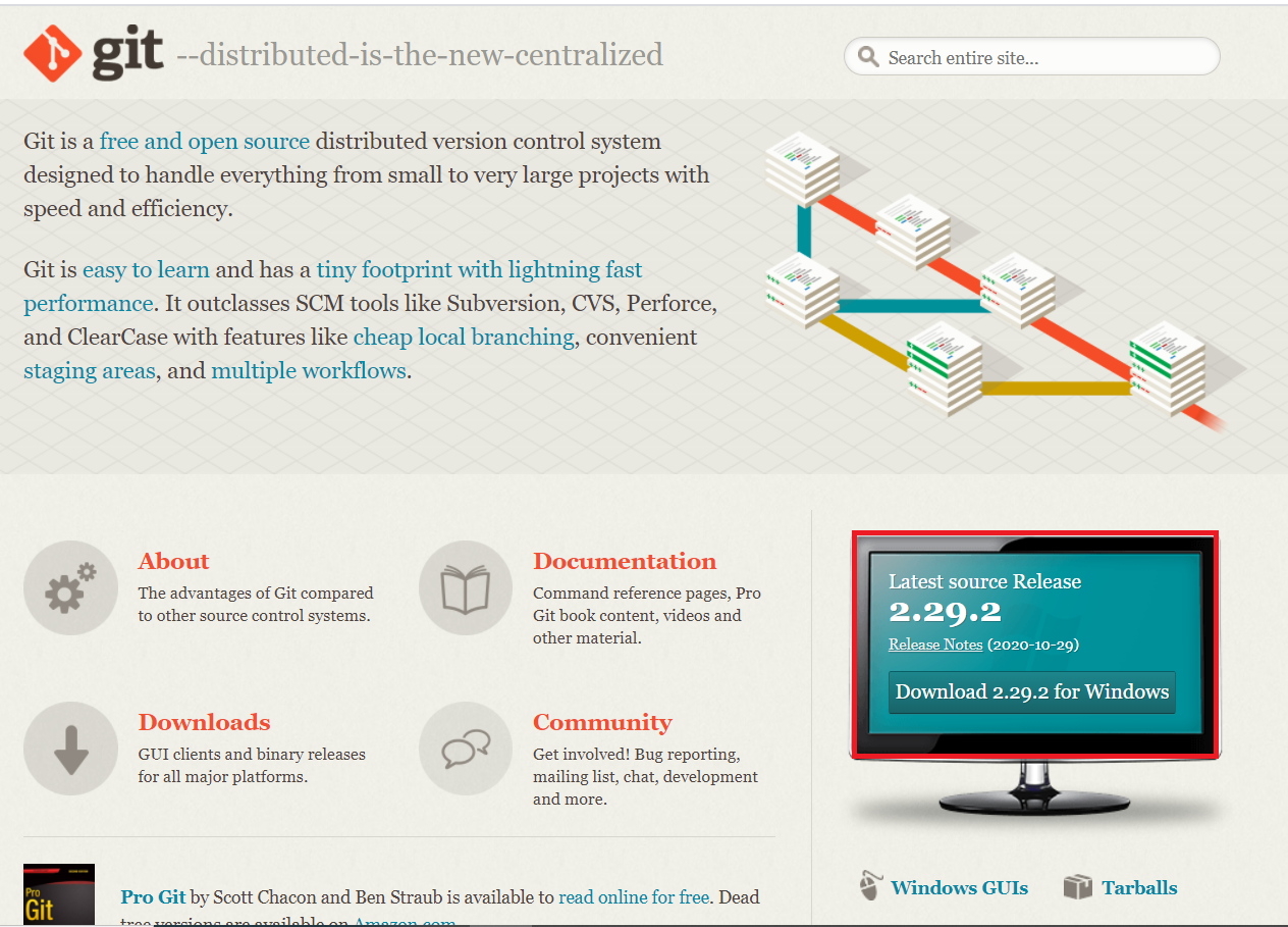 먼저, 이곳을 클릭하여 Git 공식 문서 홈페이지에 들어갑시다.