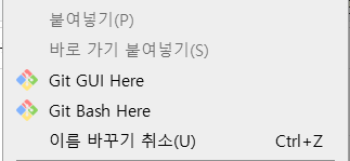 (1) Git Bash Here : Git Bash를 연결하는 기능인데, 폴더에서 Git을 바로 연결할 수 있는 기능입니다.