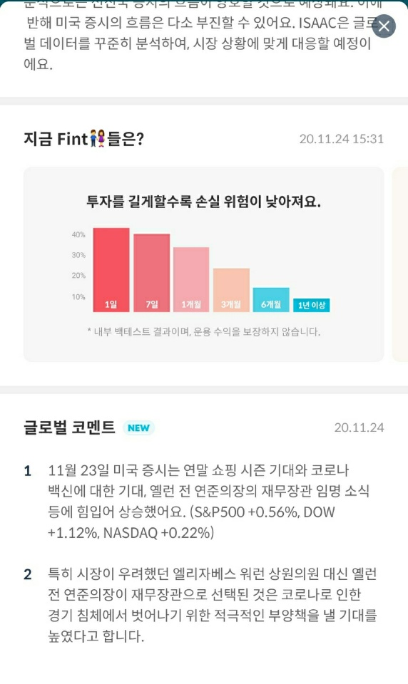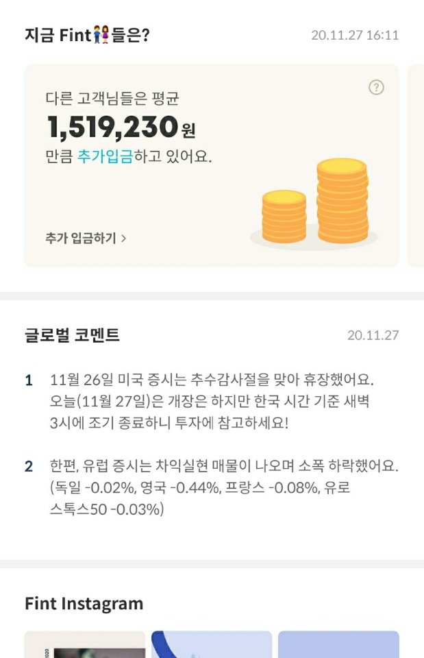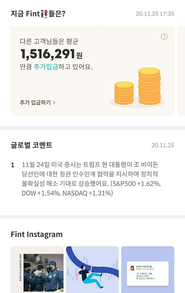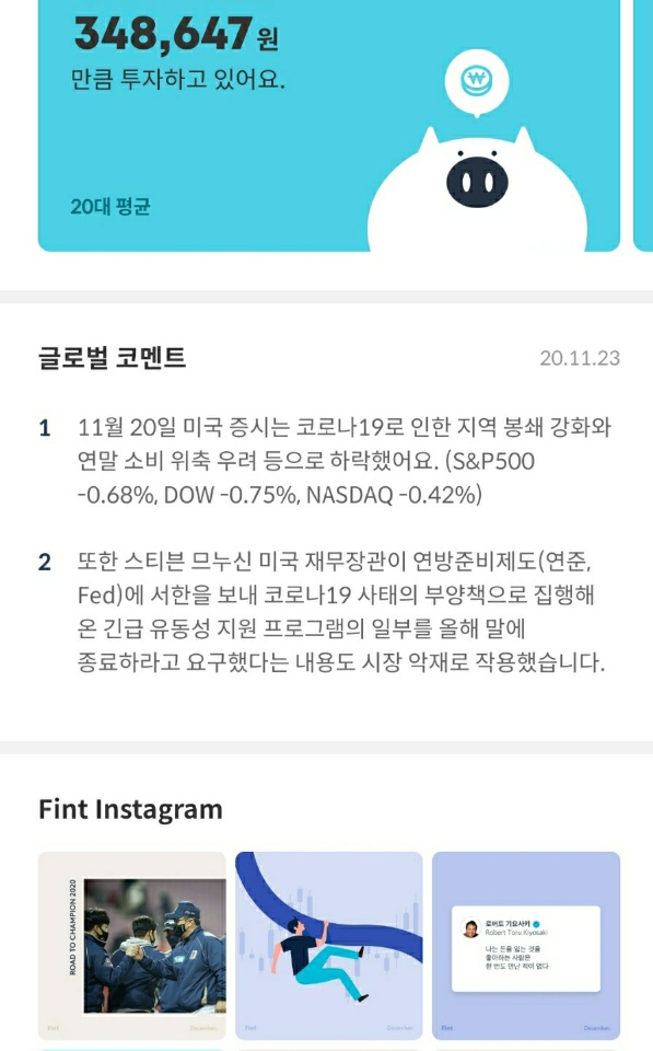 | [Fint] 핀트 투자 후기 및 일지 (42일차) (2) | 2020.11.22 |