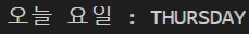 제가 이 글을 쓸 당시 목요일이었기때문에 THURSDAY가 잘 나온다는 것을 알 수 있습니다.