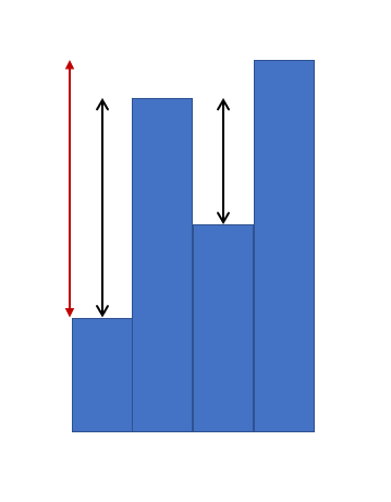 먼저, 정렬된 상태를 생각해 봅시다. 저는 편의상 요소의 값을 막대 그래프로 나타내 보겠습니다.