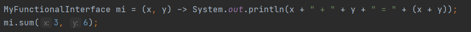 MyFunctionalInterface에서 sum 메소드에 매개 변수 int x와 int y를 추가해 줍니다.