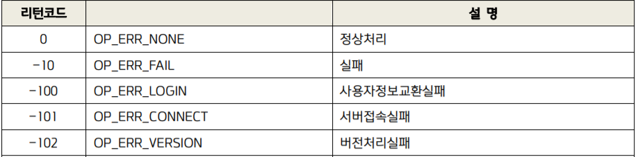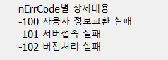 이를 바탕으로 공식 개발가이드의 에러코드표를 보면, 위와 같이 리턴 코드와 설명이 있는 것을 알 수 있습니다. 이들을 딕셔너리로 표현하면 됩니다.