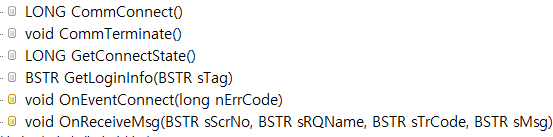 이것은 시그널 함수이며, 이를 호출할 시 "OnEventConnect()" 이벤트를 발생시키는 것을 알 수 있습니다. 그리고 설명에서 로그인 윈도우를 실행한다고 되어있는데, KOA Studio에서 로그인을 할 때 그 창이 실행되는 것입니다.