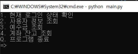 여기서 4번을 누르면 계좌 잔고를 조회할 수 있습니다.