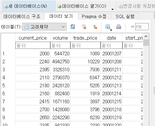 SQLite3 DB에서 일봉 데이터 조회