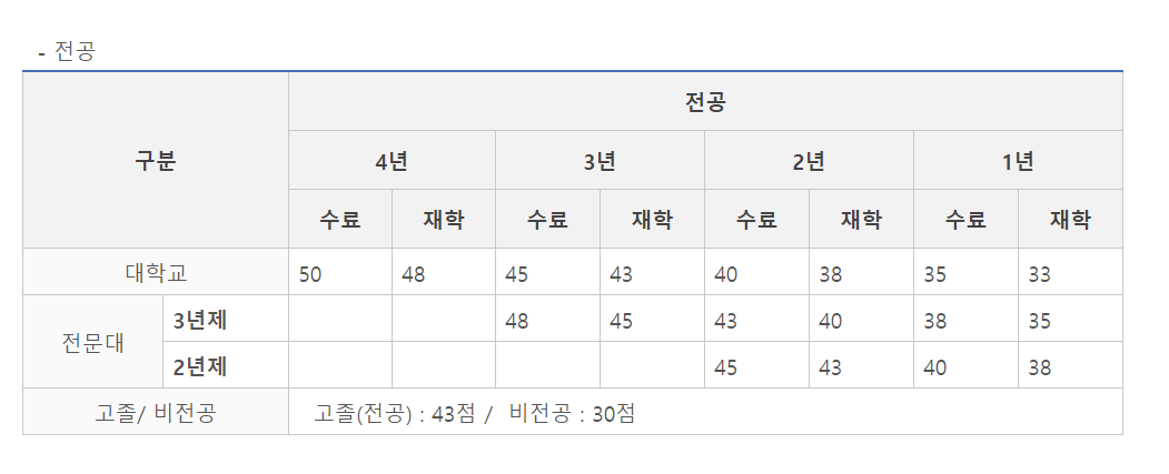마지막 50점에 해당하는 전공 점수입니다. 정보보호, 컴퓨터, 전산 학과 중 하나이면 되며, 4년제 대학 2년 수료이상 한다면 높은 점수를 받아가지 않을까 싶습니다.