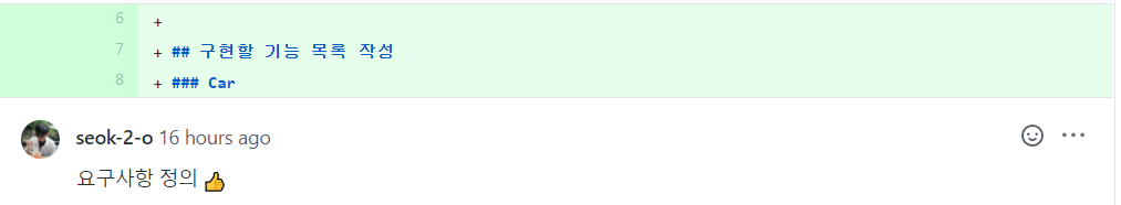 네 번째 수정 사항은 README 소제목 변경인데, 이제부터 README에 구현할 기능 목록 작성보다는 요구사항 정의라고 쓰겠습니다 ㅎㅎ