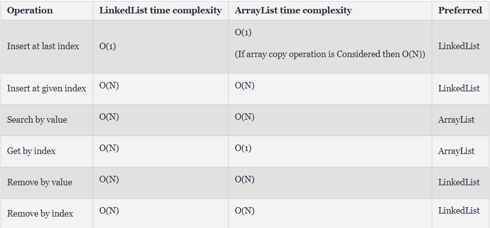 ArrayList와 LinkedList의 시간복잡도 정리