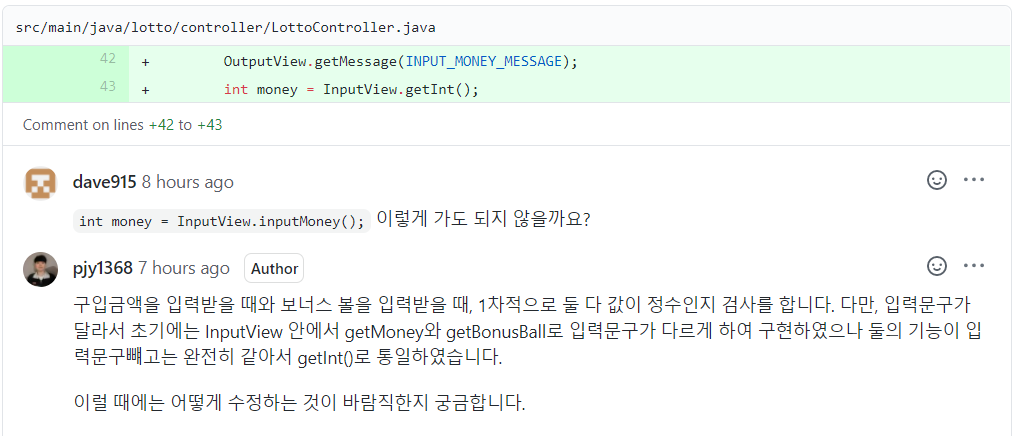 그래서 이 내용은 리뷰어 님과 이야기하면서 어떻게 개선하는 것이 좋을지 조언을 구하려고 합니다.