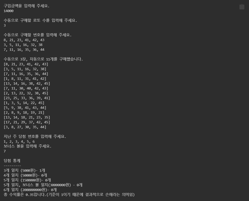 오늘은 오전 중으로 수업이 있었고, 이후에는 로또 1단계 미션 3차 피드백 및 2단계 미션을 진행하였습니다.