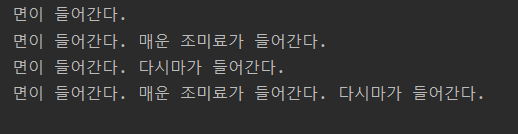 System.out.print("다시마가 들어간다. ");