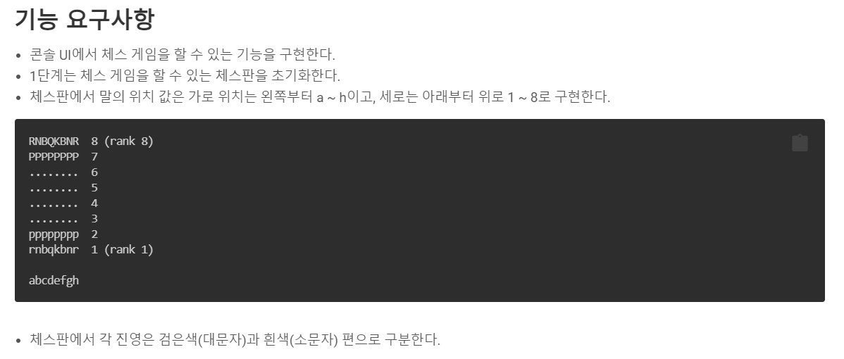 1단계는 단순히 체스판을 보여주는 것입니다. 그리고 위 사진에는 가로축과 세로축, 그리고 (rank) 출력문이 있는데 이것은 실제로 출력하지는 않습니다.