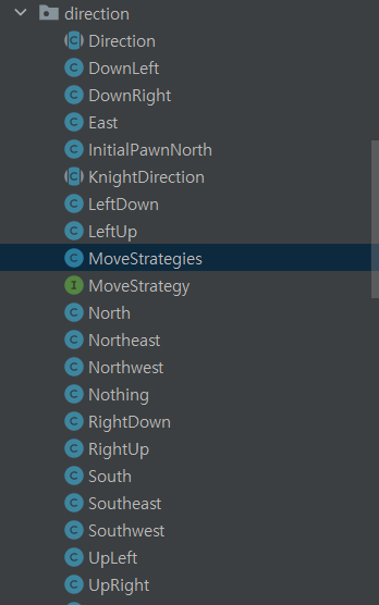 또한, 각 이동 전략의 필드가 fileDegree와 rankDegree로 되어 있고, 이동 전략 하나 하나가 MoveStrategy 인스턴스이므로 fileDegree와 rankDegree를 이용하여 손쉽게 특정 방향이 같은지 판단할 수 있습니다.