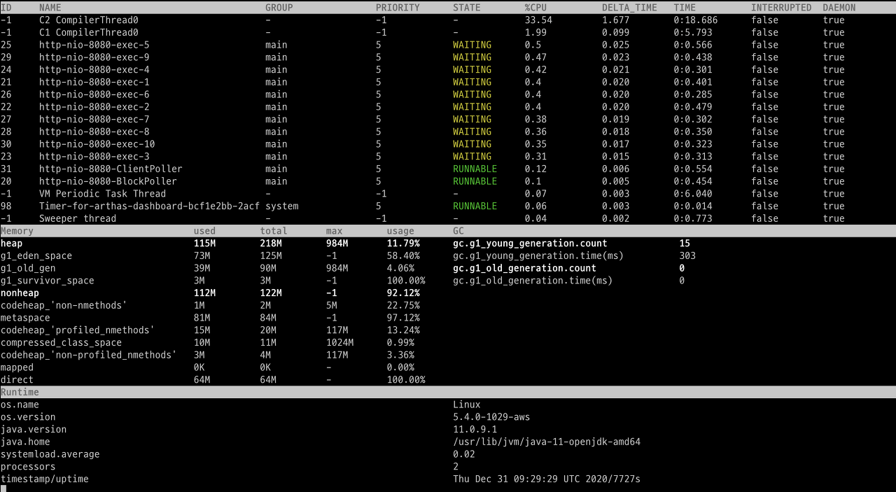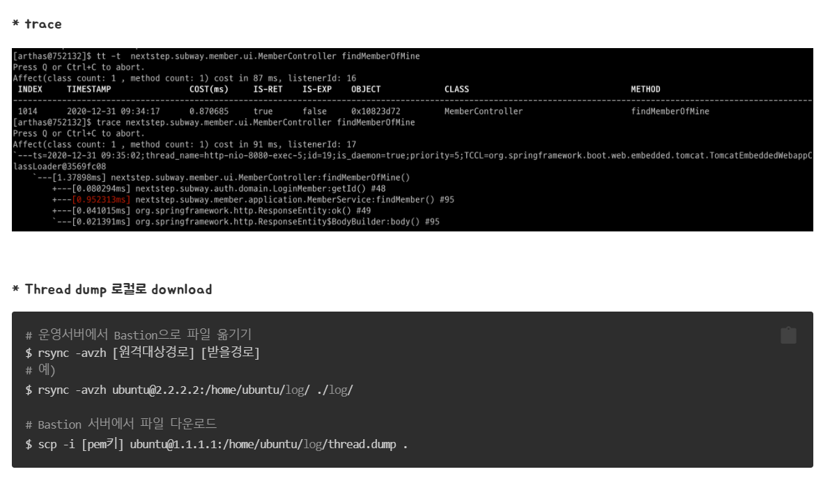 다음 요구 사항은 다양한 방법으로 로그를 수집하는 것입니다. 처음에는 Arthas를 이용해서 애플리케이션 상태를 확인할 수 있었습니다.