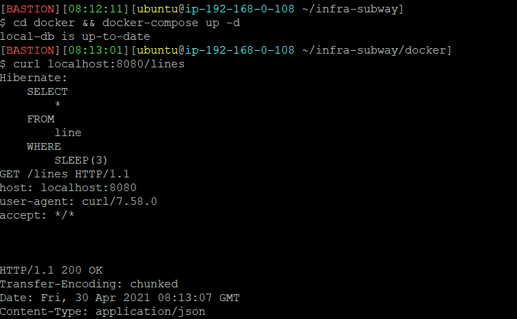 이런 식으로 통신 응답이 오는 것을 확인했습니다. 다만, 지금 글쓰는 시점에 크루한테 물어보니까 이렇게 단순히 빌드하고 실행하여 curl을 날리는 것이 아니라고 합니다.