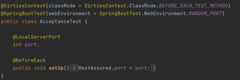 그전까지 스프링으로 테스트를 하지 않아서 스프링 관련 테스트 개념이 가장 부족합니다. 샘플 코드를 보면서 어떻게든 E2E 테스트를 구현해 보았지만, RestAssured이 하는 역할이나 다음 코드가 어떤 동작을 하는지 이해할 수 없었습니다.