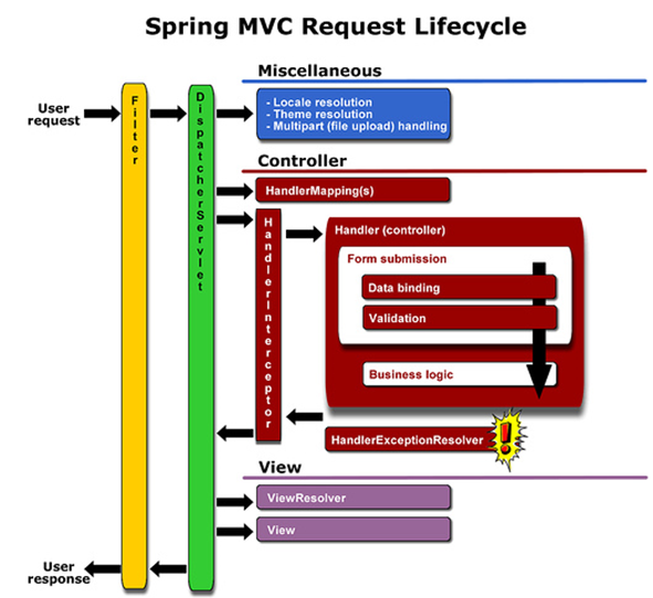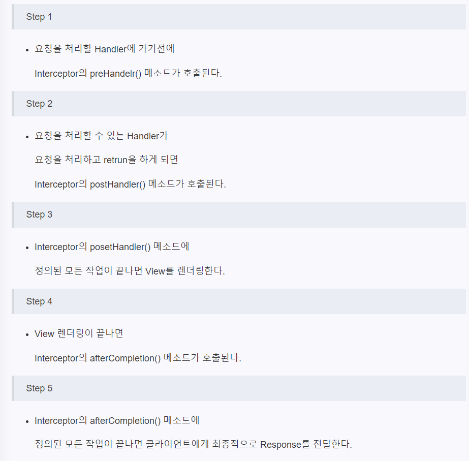 스프링 인터셉터는 DispatcherServlet가 실행된 후 Controller로 가기 전에 끼어 들어서 HttpRequest나 HttpResponse를 가로챕니다. 위 사진이 얼핏 보면 복잡해보이는데, 아래와 같이 이해하시면 좋습니다.