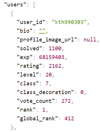 저는 현재 대학교에서 알고리즘 소모임에 들어가 있습니다. 어젯밤에 학교 선배로부터 백준 랭작을 위해 우리 학교 학생들이 아직 풀지 않은 문제 리스트를 보여주는 프로그램을 만드는 것이 어떻겠냐는 연락을 받았습니다. 처음에는 이미 하려던 프로젝트가 있어서 망설였으나, 이내 수락했습니다. 왜냐하면, 업비트 api는 제작 과정이 복잡하고 인증 과정까지 들어가지만, 백준 리스트 조회 기능은 인증도 없을 뿐만 아니라 요구 사항 자체도 적었기 때문이죠. 또한, 어제부터 외부 api를 이용하여 개발을 하고 있는데, 이 방식 자체가 굉장히 낯설었기 때문에 비교적 쉬운 프로젝트를 통해 적응하는 것이 좋겠다는 판단이 들었습니다.