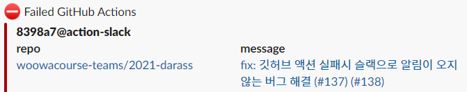 이런 식으로 실패 알림이 잘 오는 것을 확인할 수 있습니다.