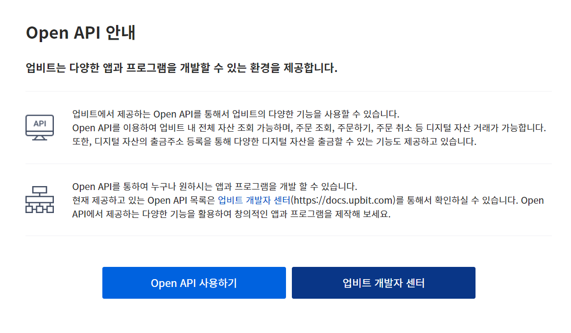 먼저, 이 링크를 클릭하여 업비트 Open API 관련 사이트로 접속합니다.