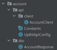 참고로, 응답값에는 snake case로 만들어진 변수가 있어서 @JsonProperty를 이용하여 camel case로 바꿔주었습니다. 결과적으로 아래와 같은 패키지에 객체들이 있으면 됩니다.