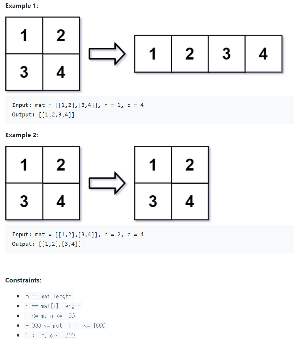 answer[i / c][i % c] = mat[i / n][i % n] (단, i는 0 <= i < r * c 범위를 갖는다.)