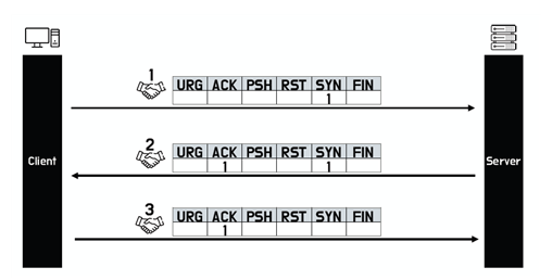 - 클라이언트는 서버에게 접속을 요청하는 SYN 플래그가 설정된 패킷을 보낸다.