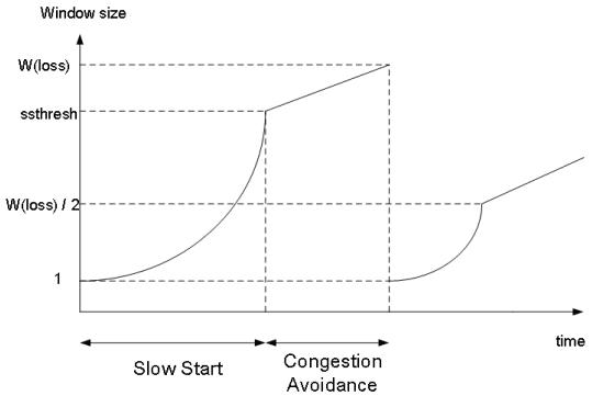 대표적으로 TCP Tahoe와 TCP Reno가 있다. TCP Tahoe는 처음에는 Slow Start를 사용하여 자신의 윈도우 크기를 지수적으로 빠르게 증가시키다가 ssthresh를 만난 이후부터는 AIMD을 사용하여 선형적으로 윈도우 크기를 증가시킨다. 반면, TCP Reno는 Tahoe와 마찬가지로 Slow Start로 시작하여 임계점을 넘어서면 AIMD을 사용하되, Tahoe와 다르게 3 ACK Duplicated와 Timeout 혼잡 상황을 구분한다.