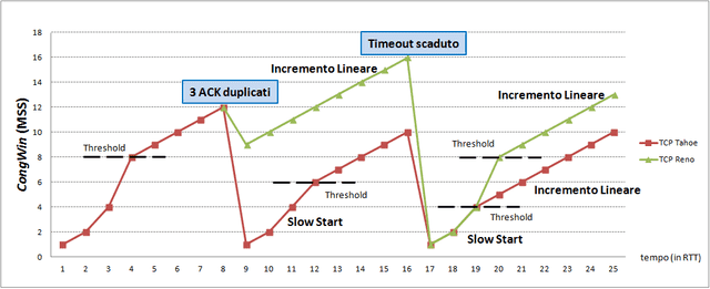 그러나 Timeout에 의해서 데이터가 손실되면 Tahoe와 마찬가지로 윈도우 크기를 바로 1로 줄여버리고 Slow Start를 진행한다. 이때 ssthresh를 변경하지는 않는다.
